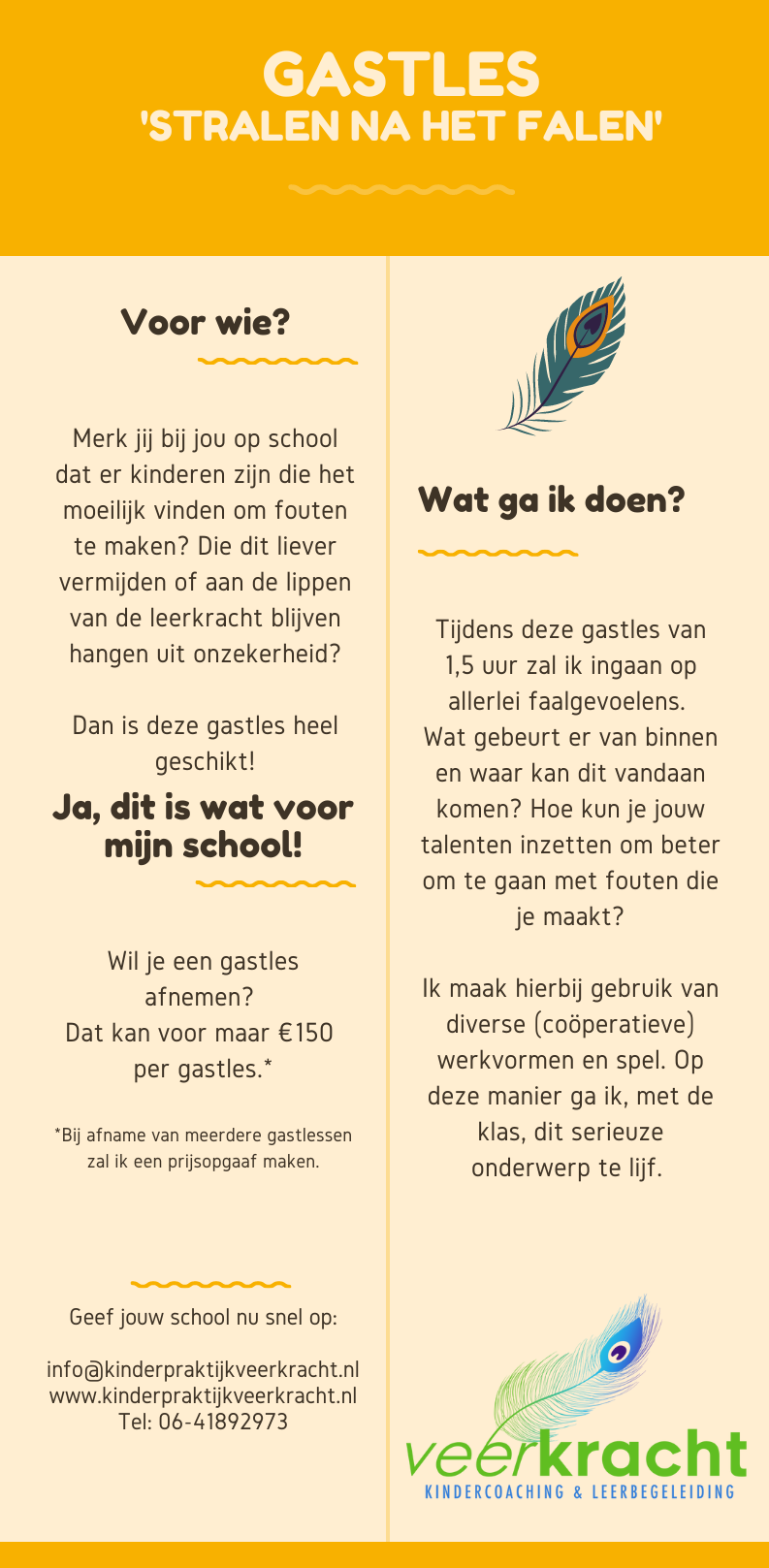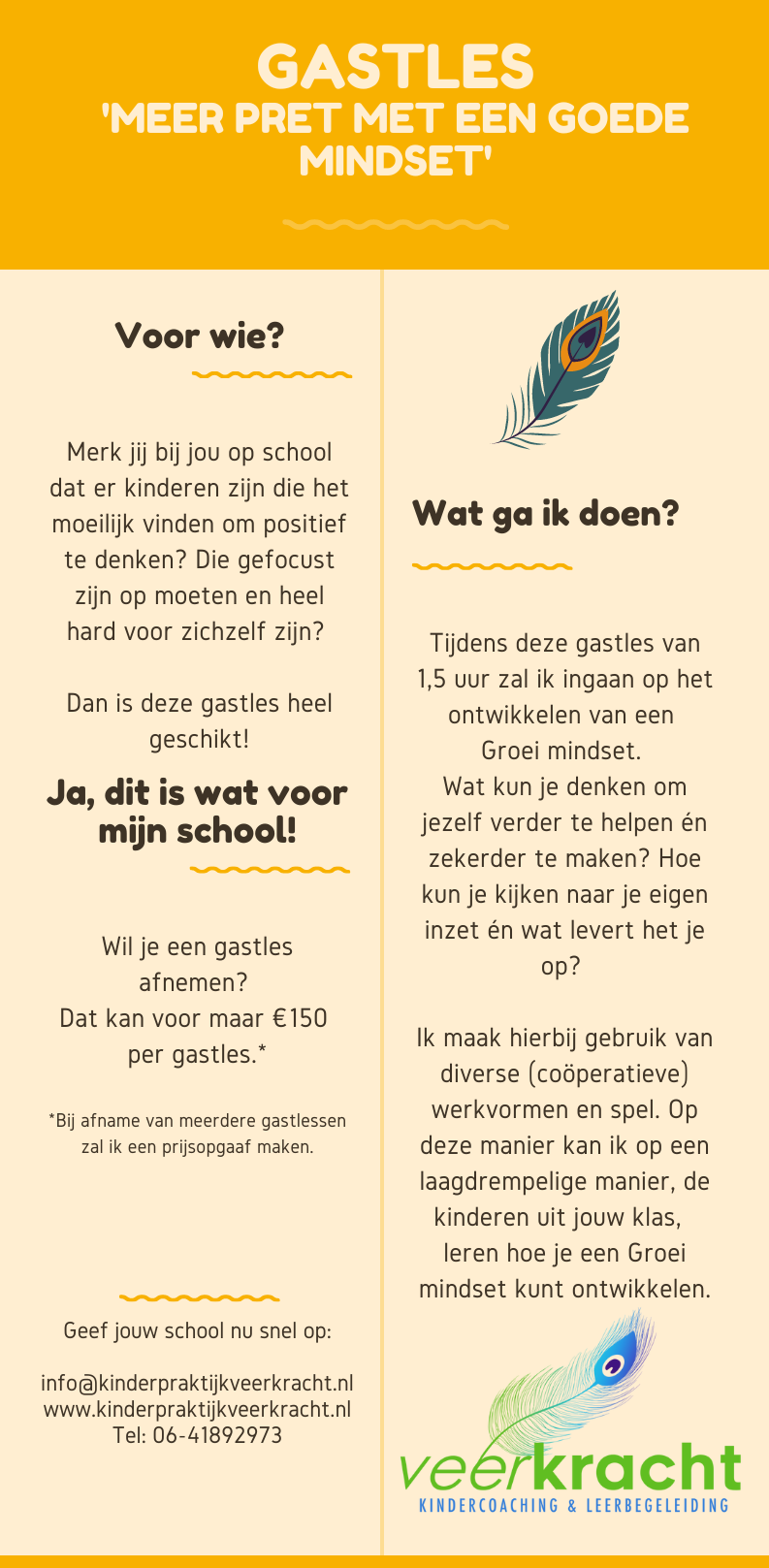 Ik verzorg gastlessen op het gebied van Mindset, faalangst vanaf groep 5 de gastles leren leren/in een goede Flow naar het VO is speciaal voor kinderen in groep 7 en 8 .